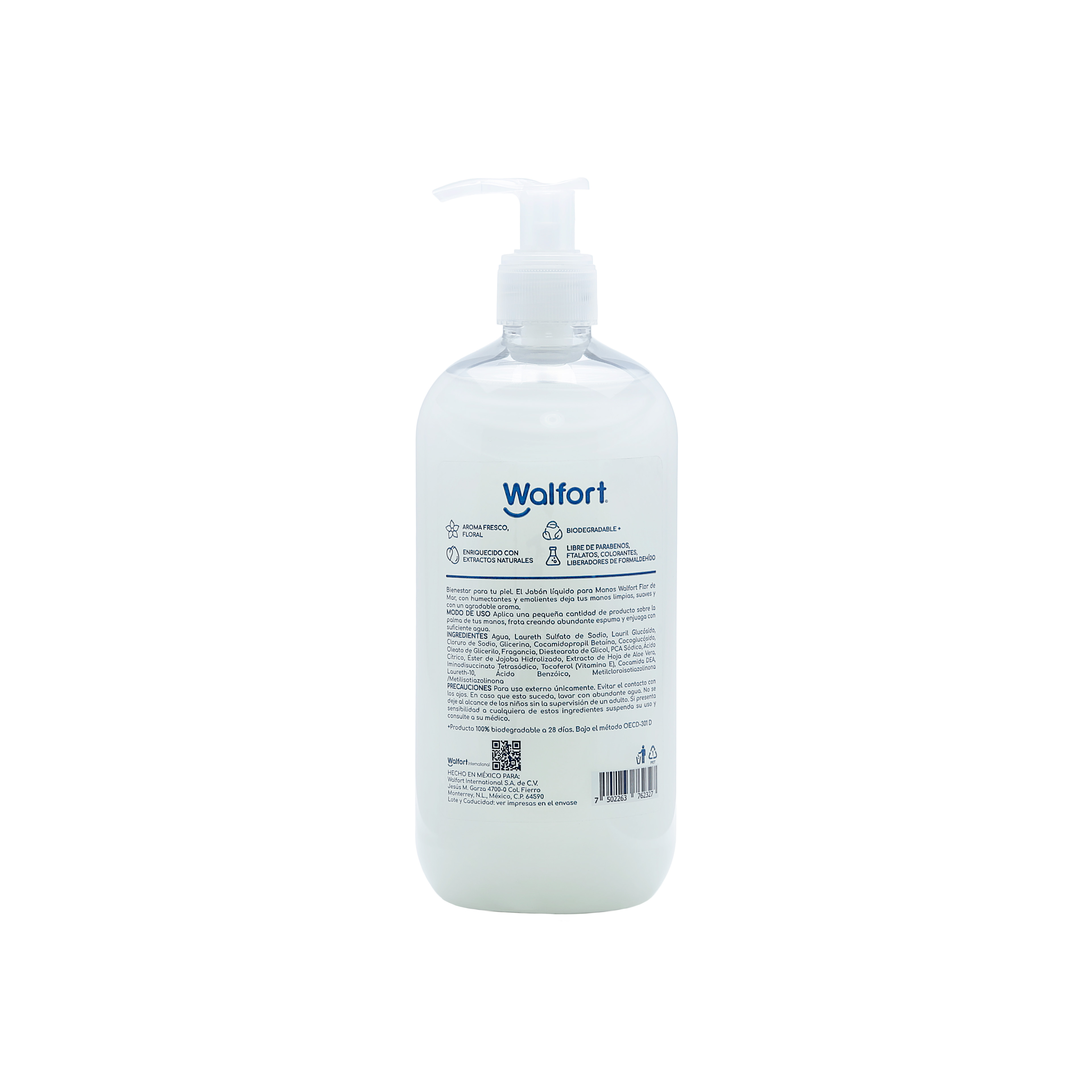 Jabón líquido para manos Flor de Mar 480 ml. Contiene humectantes y emolientes que dejan tus manos limpias, suaves y con un agradable aroma. Biodegradable, no irrita la piel, libre de parabenos y adicionado con vitamina E. INSTRUCCIONES DE USO: Aplica una pequeña cantidad de producto sobre la palma de tus manos, frota creando abundante espuma y enjuaga con suficiente agua. PRECAUCIONES: Sólo uso externo, mantener fuera del alcance de los niños. Evitar el contacto con los ojos. Si ocurre contacto, enjuague con agua. E