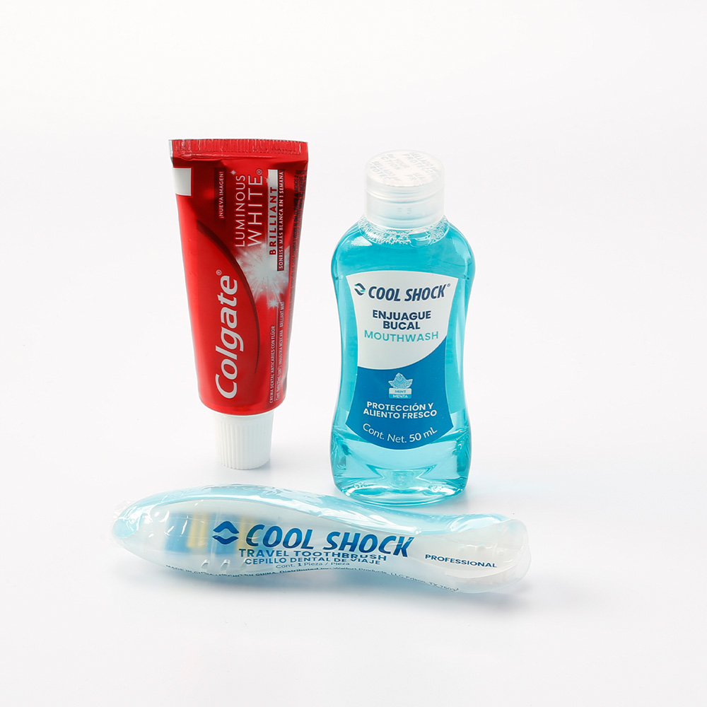 Incluye cepillo dental compacto de viaje, pasta dental de 22ml y enjuague bucal de 50ml, todo lo que necesitas para mantener tu higiene bucal fuera de casa. Su tamaño portátil es perfecto para llevar en maletas, mochilas o kits de emergencia. Mantén tu aliento fresco y tu boca limpia estés donde estés.