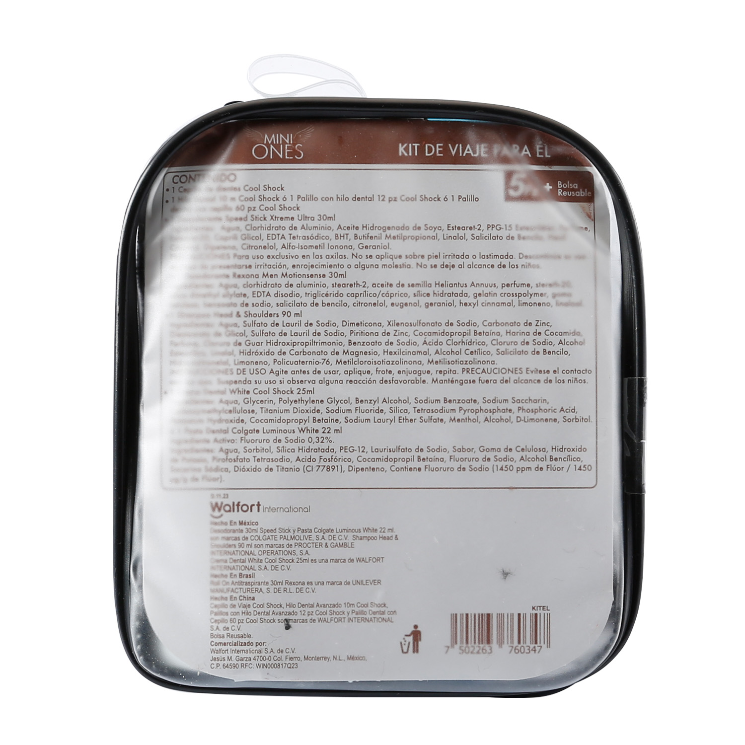 Práctico por su tamaño para viajar. Contiene todo lo necesario para tu higiene personal