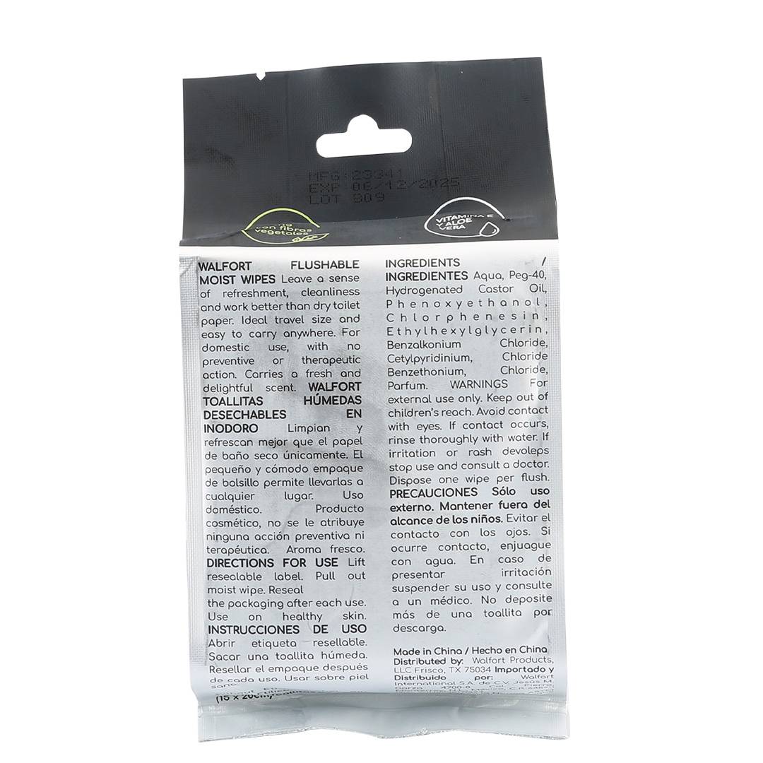 Papel higiénico húmedo 4 pack 28 pz. Incluye 4 paquetes con 7 piezas cada uno. Biodegradables, elaboradas a base de plantas, con vitamina E y aloe vera. Más que un papel de baño. INSTRUCCIONES: Abrir la etiqueta resellable. Sacar una toallita húmeda. Resellar el empaque después de cada uso. Usar sobre piel sana. PRECAUCIONES: Sólo uso externo, mantener fuera del alcance de los niños. Evitar el contacto con los ojos. Si ocurre contacto, enjuague con agua. En caso de irritación suspender su uso y consulte a un médico. No depostite más de una toallita por descarga.