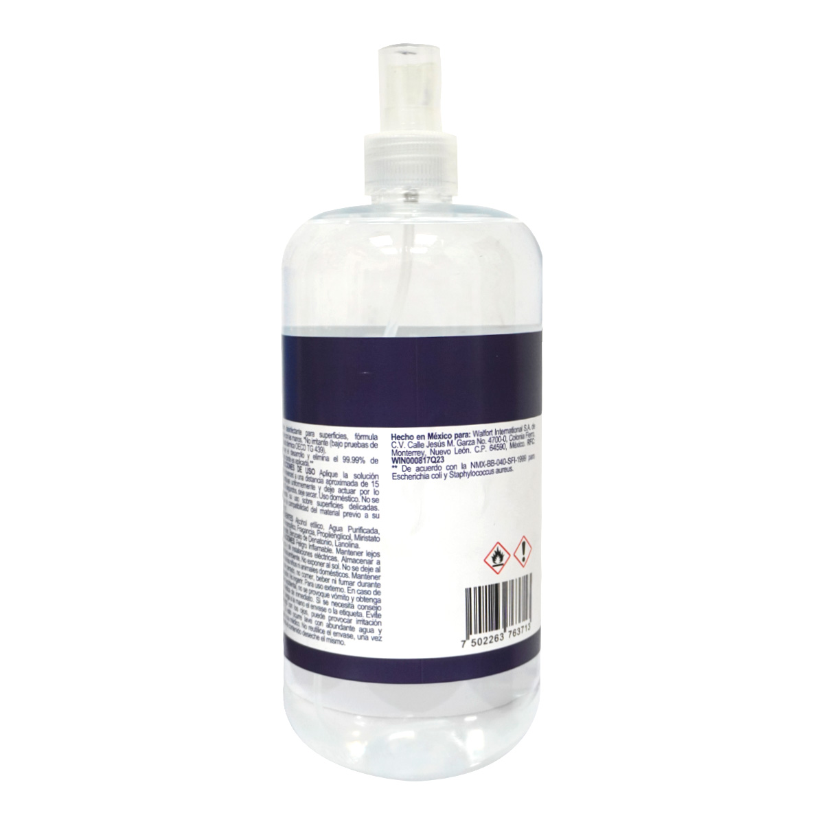 Solución desinfectante de 1 litro, ideal para mantener manos y superficies limpias en todo momento. Su formato práctico permite un uso continuo en casa, oficina o negocio.