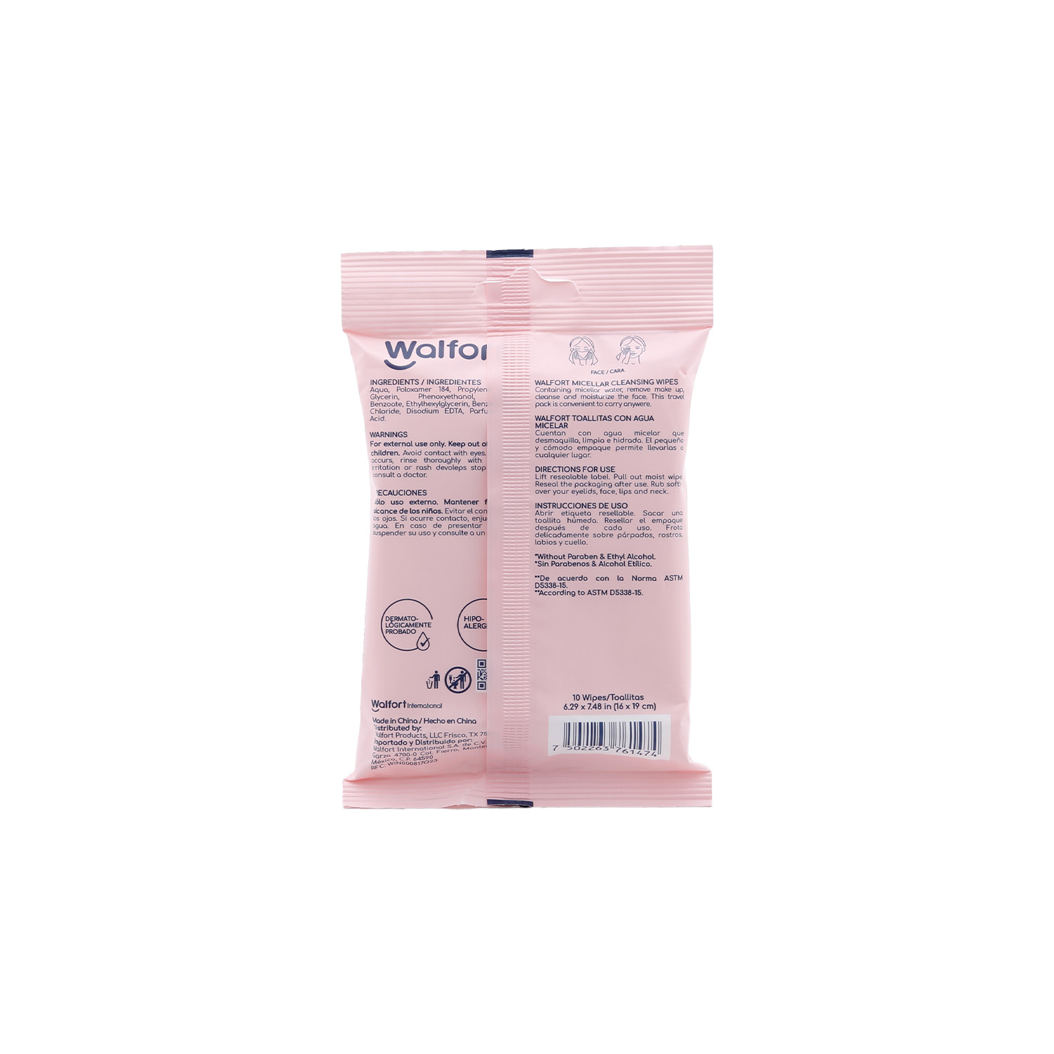 Toallitas húmedas desmaquillantes con agua micelar 12 piezas. Desmaquillan, limpian e hidratan. Libres de alcohol y parabenos. Mejoran la apariencia de la piel haciéndola lucir con un aspecto más fresco y joven. INSTRUCCIONES Limpie alrededor de los ojos, rostro y cuello para remover el maquillaje e impurezas. No necesita enjuagarse. Después de usar la toallita, vuelva a sellar el paquete. Deseche la toallita en la basura, no arrojar en el sanitario. PRECAUCIONES Solo para su uso externo. Mantener fuera del alcance de los niños. Si el producto entra en los ojos, enjuague bien con abundante agua.