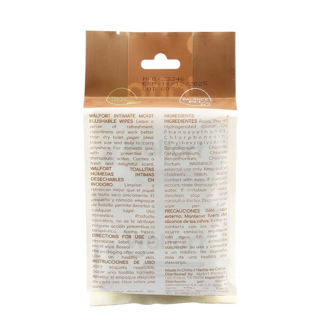 Toallitas Húmedas Íntimas 4 pack 28 pz. Incluye 4 paquetes con 7 piezas cada uno. Biodegradables, hechas con fibras vegetaes, sin alcohol. INSTRUCCIONES: Abrir la etiqueta resellable. Sacar una toallita húmeda. Resellar el empaque después de cada uso. Usar sobre piel sana. PRECAUCIONES: Sólo uso externo, mantener fuera del alcance de los niños. Evitar el contacto con los ojos. Si ocurre contacto, enjuague con agua. En caso de irritación suspender su uso y consulte a un médico. No depostite más de una toallita por descarga.